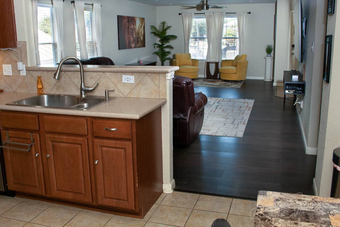 This cozy 4-bedroom, 2.5-bath home features an open-concept layout with a spacious deck and outdoor bar—perfect for relaxing or entertaining. Enjoy a fully equipped kitchen, laundry room, media room, and dedicated workstation. After exploring nearby attractions such as the River Walk, Six Flags, SeaWorld or Schlitterbahn Waterpark, unwind and rest comfortably in this inviting getaway.
